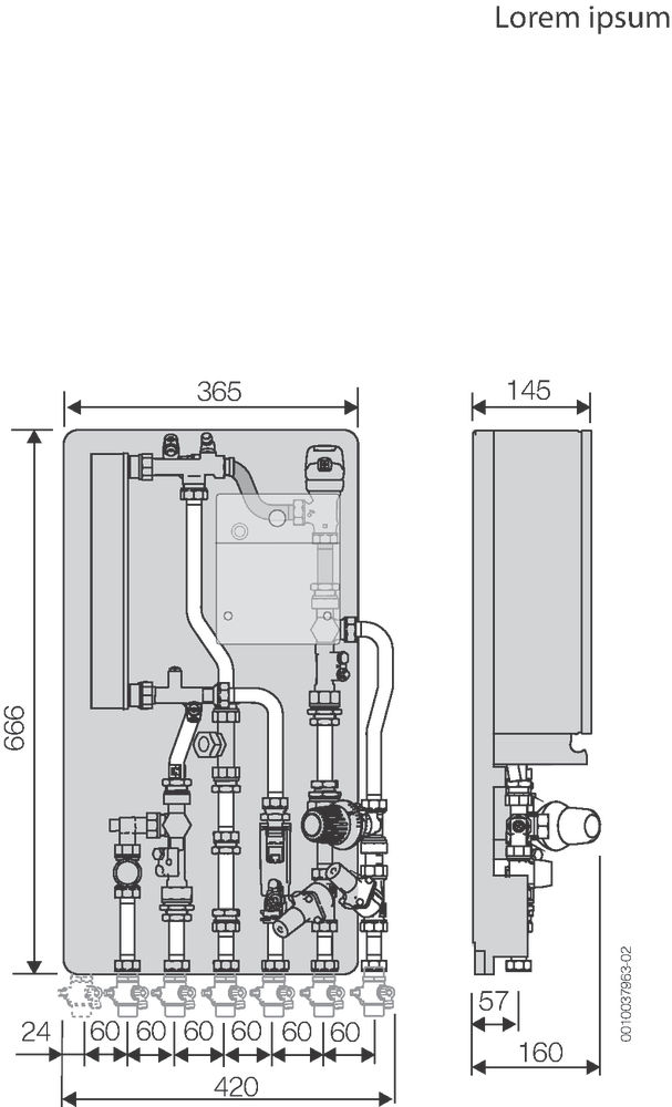 Wohnungsstation Logamax kompakt WS160.3-35 TE für einen ungemischten Heizkreis mit elektronisch geregelter Warmwasserbereitung im Durchlaufprinzip, mit Aufputzgehäuse, Montagerahmen für Austauschmodul und 2 gedämmten Rohrleitungen für den Anschluss der Primärversorgung von oben. Warmwassertemperatur am Regelmodul MHIU100 einstellbar von 30 bis 60 Grad. Optionale Warmhaltefunktion (Sommer-Bypass, aktivierbar über beiliegenden Steckwiderstand für 35 Grad. Weitere Widerstände für andere Temperaturen im Lieferumfang. Das elektronisches Steuerventil mit großem Modulationsbereich für die Warmwasserbereitung reguliert den Primärvolumenstrom für eine konstante Auslauftemperatur. Die maximale Warmwassermenge ergibt sich aufgrund des Parallelbetriebs in Abhängigkeit von der benötigten Heizleistung sowie den gewählten Systemtemperaturen. Die maximale Warmwassermenge ergibt sich aufgrund des Parallelbetriebs in Abhängigkeit von der benötigten Heizleistung sowie den gewählten Systemtemperaturen. Mit Zonenventil u. Differenzdruckregler, voreingestellt auf 150 mbar für den ungemischten Heizreis zur Vermeidung von Fließgeräuschen. Möglichkeit zur Ergänzung eines Stellmotors (M30 x 1,5). Rücklauftemperaturbegrenzer für den Heizkreis, einstellbar von 20 bis 50 Grad Celsius